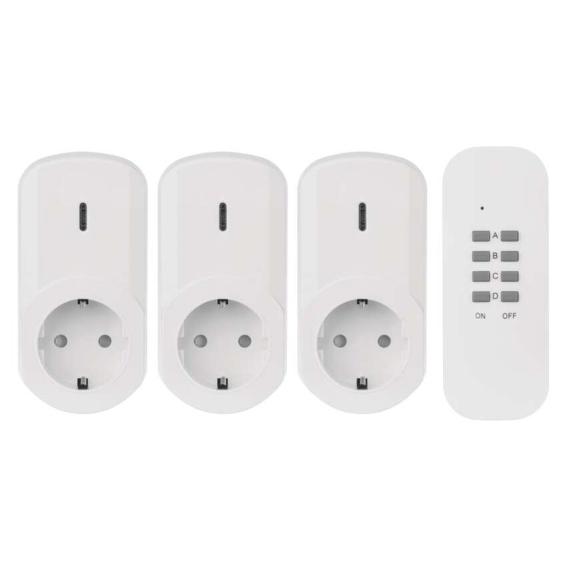 aljzatok száma: 1× 2P + PE|anyag: műanyag|biztonsági érintkezési helyzet: nincs megadva|értékesítési csomagolás: 1 db, doboz|feszültség/áram: 230 V~/4,35 A max.|gyerekzár: igen|jelátviteli frekvencia: 433,92 MHz|jel hatótávolsága: nyílt területen legfeljebb 25 m|kapcsoló: nem|könnyű betanítás: aljzatok kézi hozzárendelése a vezérlőhöz|kültéri használat: nem|max. terhelés: 1 000 W|pólusszám: 2P + PE|szín: fehér|távvezérlő: tápellátás 1× 3 V CR2032 (tartozék)|termék: távolról irányítható aljzatok, 3 aljzat + 1 távirányító|típus: SCHUKO|védettség: IP20|vezérelhető: akár 4 aljzat