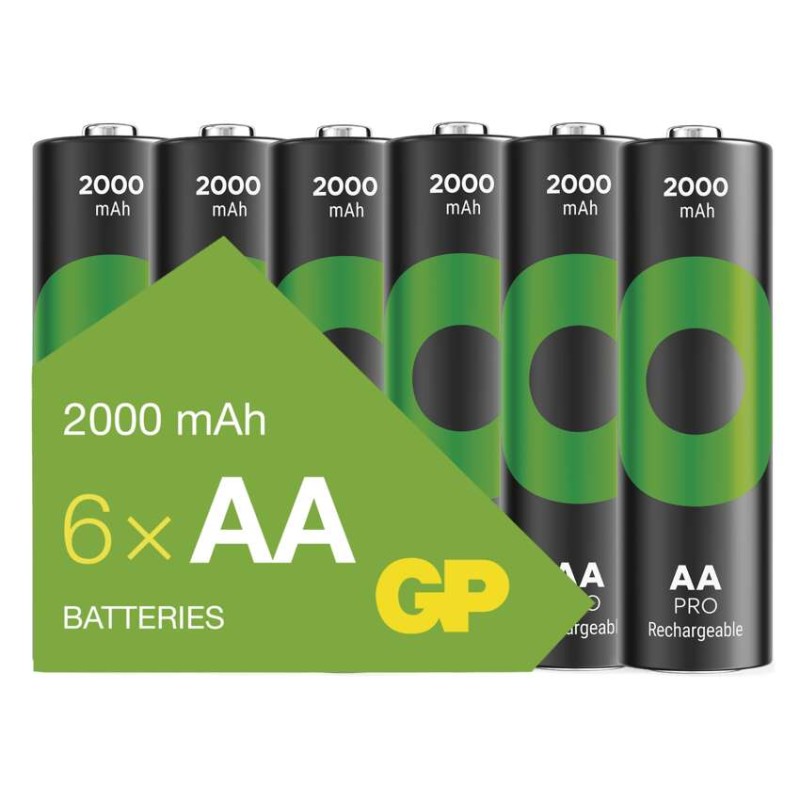 akkumulátor mérete: AA|értékesítési csomagolás: 6 db, kis papír doboz|feszültség: 1,2 V|kapacitás: 2 000 mAh|kategória/sorozat: ReCyko Pro|kémiai összetétel: NiMH|márka: GP|max. tárolási idő: nincs megadva|méretek: 14,5 × 50,5 mm|súly: 30 g|típus: HR6 (AA ceruza)|töltési ciklusok száma: több, mint 1 500|tölthető: igen|üzemi hőmérséklet: -20 °C és +50 °C