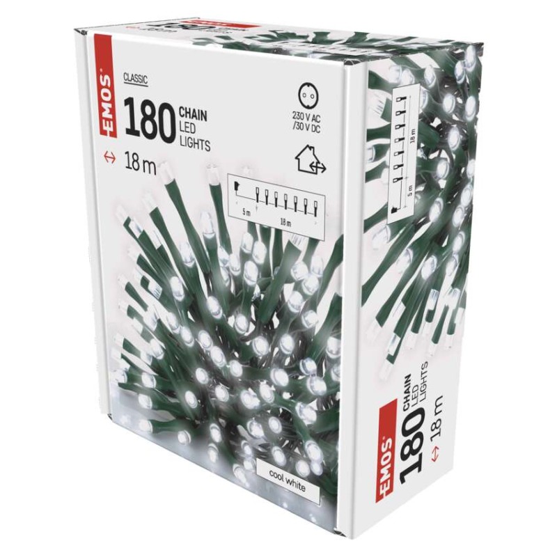 a fa magasságához: 200 cm|anyag: PVC|bemeneti feszültség: 230 V AC|csatlakoztatási lehetőség: nem|élettartam: 10 000 óra|értékesítési csomagolás: 1 db, doboz|fény színe: hideg fehér|fogyasztás: 3,6 W|forma: klasszikus|funkció: világít|garancia-időszak: 2 év|használat: kültéri és beltéri|időzítő: igen|kábel színe: zöld|kimeneti feszültség: 31 V DC|LED-ek közötti távolság: 10 cm|LED-ek száma: 180|LED mérete: 5 mm|méretek: 18 m|tápellátás típusa: AC (hálózati) adapter|tápvezeték hossza: 5 m|távvezérlő: nem|termék: lánc|védettség: IP44