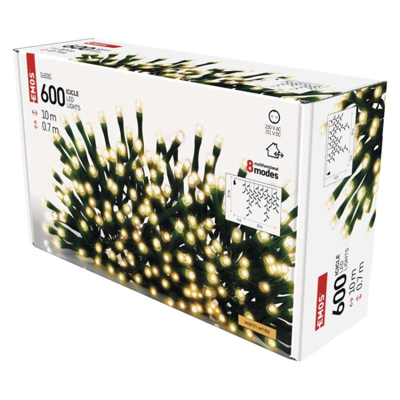 a fa magasságához: nincs megadva|anyag: PVC|bemeneti feszültség: 230 V AC|csatlakoztatási lehetőség: nem|élettartam: 10 000 óra|értékesítési csomagolás: 1 db, doboz|fény színe: meleg fehér|fogyasztás: 9 W|forma: klasszikus|funkció: 8 üzemmód (multifunkcionális)|garancia-időszak: 2 év|használat: kültéri és beltéri|időzítő: nem|kábel színe: zöld|kimeneti feszültség: 31 V DC|LED-ek közötti távolság: 10 cm|LED-ek száma: 600|LED mérete: 5 mm|méretek: 10 × 0,7 m|tápellátás típusa: AC (hálózati) adapter|tápvezeték hossza: 5 m|távvezérlő: nem|termék: jégcsap|védettség: IP44